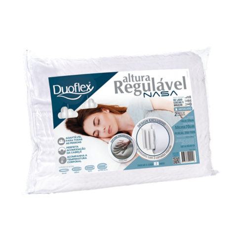 • A Duoflex disponibiliza o travesseiro Altura Regulável também nas espumas especiais Nasa e Látex, produzidas com total proteção antiácaros, fungos e bactérias.