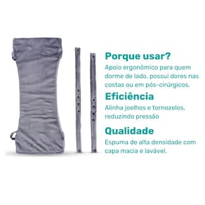 Fabricado em espuma 100% Poliuretano de alta qualidade, seu design ergonômico favorece o descanso dos joelhos e tornozelos de forma linear, reduzindo atritos e tensões. Acompanha capa macia em tecido 100% poliéster com toque aveludado, removível e lavável, garantindo praticidade e higiene.