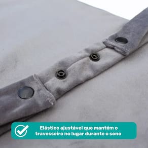 Com elástico ajustável, o travesseiro permanece firme entre as pernas durante toda a noite, proporcionando suporte contínuo e posicionamento correto.