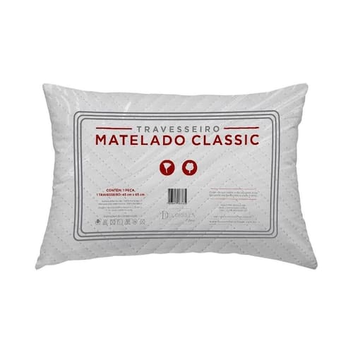 Travesseiro Suporte 65cm X 45cm Matelado Classic Travesseiro Suporte 65cm x 45cm Matelado Classic O Travesseiro Matelado é confeccionado em poliéster e 180 fios, material resistente e extremamente confortável. Possui maciez incrível garantindo excelentes noites de sono para você e toda sua família.