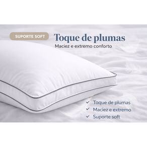 Toque de plumas ultra macio: sensação aconchegante que envolve o rosto, promovendo relaxamento imediato ao deitar.