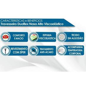 Imagens Meramente Ilustrativas. Não nos responsabilizamos pela montagem/instalação dos produtos. Todas as informações divulgadas são de responsabilidade exclusiva do fabricante/fornecedor. Tonalidades Disponíveis: Branca | Tecido com Tratamento: AntiÁcaro e AntiFungo | Tipo de enchimento: Viscoelástica | Tipo de Conforto: Macio | Certificações de Qualidade: Qualidade Aprovada | Tempo de Garantia: 3 meses | Altura do travesseiro: Alto | Nossa Avaliação: Qualidade Excelente | Tecido da Capa de Revestimento: Algodão | Vantagens Extras do Travesseiro: Acompanha a Temperatura Corporal | Quantidade por Embalagem: 1 unidade | Formato do Travesseiro: Tradicional | Formato de Venda: Unidade | Garantia de Fábrica: Garantia de Fábrica | É hipoalergênica: Sim | É antiácaros: Sim | É Antibacteriana: Sim | Com aromaterapia: Não | É kit: Não | É Lavável: Sim | Com Zíper: Não | Com fronha removível: Não | Com memoria: Não | Unidades por kit: 0 | É inteligente: Não | É antihongos: Sim | Fonte do produto: N/A | Condição do item: Novo | Produto: N/A | Código universal de produto (GTIN): 7896806698717 | Condição do Item: Novo | Link Site: https://www.costaricacolchoes.com.br/produtos.asp?produto=739 | Numeral: 0 | Não se Aplica: N/A | Não Possui: Não | Link Youtube: https://www.youtube.com/watch?v=NDO9CHipg1Q | ID Youtube: NDO9CHipg1Q | Linha/Modelo: Duoflex | Cor Cnova: Blush | Cor Meli: Ciano | Contatos Sac Fábrica: www.duoflex.com.br | Categoria Trilha: Cama, Mesa e Banho> Travesseiro Viscoelástico | Categoria - Sub: Travesseiro Viscoelástico | Categoria - Pai: Cama, Mesa e Banho | Comprimento Embalagem: 40.00 | Largura Embalagem: 60.00 | Altura Embalagem: 17.00 | Kit: 0 | Peso: 3.54 Kg | Peso Real Kg: 3.54 | Peso Cubado: 14.75 | Volumes: 1 | M3: 0.06 | Comprimento/Profundidade: 70 cm | Largura: 50 cm | Altura: 17 cm | Tamanho Montado: Larg:50.00 x Comp/Prof:70.00 x Alt: 17.00 | Comprimento/Profundidade Montado: 70.00 | Largura Montado: 50.00 | Altura Montado: 17.00 | Data Cadastro: 2023-7-1 20:17:35 | Sigla Estoque: 6 | Marca: Duoflex Ean: 7896806698717