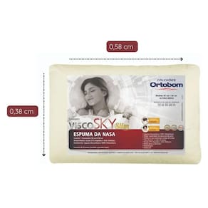 Dimensões(Cm): Travesseiro Viscoelástico Visco Sky Slim Comprimento(Profundidade): 38 cm Largura: 58 cm Altura: 12 cm