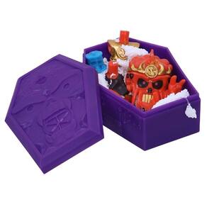 Com o Treasure X - Mini Monster Gold a brincadeira será muito mais assustadora São 8 etapas para descobrir um dos 12 monstros. Para ver qual criatura você tirará é só abrir o caixão para começar essa incrível experiência, ao tirar a placa de teia de aranha, você encontrará as peças para montar o seu monstro. Você ainda pode encontrar uma aranha de ouro. E você pode colocar seu monstro de volta no caixão. Além de poder combinar partes do corpo com outros monstros e criar suas próprias criaturas assustadoras Cada personagem tem 5 cm de altura. A aventura não tem fim com o Treasure X - Mini Monster Gold