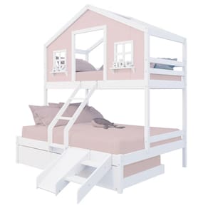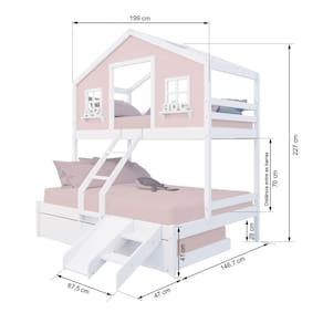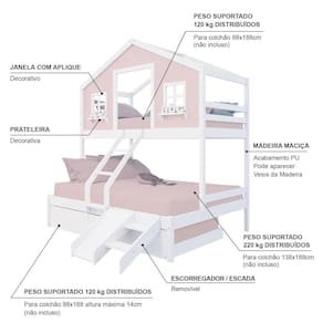 Diferenciais: Auxiliar com Rodízios, Escada com Leve Curvatura, Casinha com fechamento em MDF, Janela e Prateleira Decorativa, Kit Escada/ Escorregador.