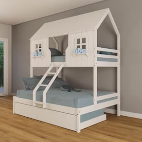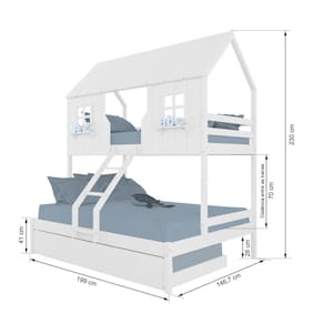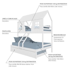 Diferenciais: Auxiliar com Rodízios, Escada com Leve Curvatura, Casinha com fechamento em MDF, Janela e Prateleira Decorativa.