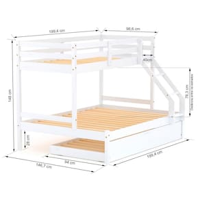 Diferenciais: Beliche em Madeira com grade de proteção fixa na parte de trás, Escada com Leve Curvatura, Grade de Proteção Dupla, Auxiliar em madeira/MDF, Auxiliar com rodízios.