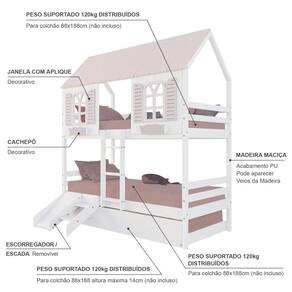Diferenciais: Auxiliar com Rodízios, Casinha e Telhado com fechamento em MDF, Janela e Cachepô, Kit Escada/Escorregador.