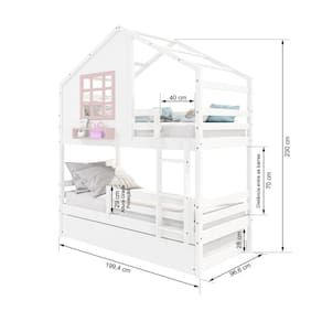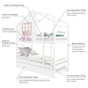 Diferenciais: Escada Fixa, Auxiliar com 4 Rodízios, Grade de Proteção Removível, Casinha com fechamento em MDF, Janela e Prateleira para Livros e Decoração, Montagem Reversível (Lado Direito ou Lado Esquerdo)