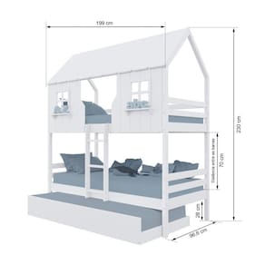 Diferenciais: Escada Fixa, Auxiliar com Rodízios, Casinha e Telhado com fechamento em MDF, Janela e Prateleira Decorativa.