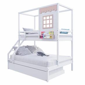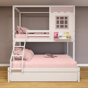 Diferenciais:Auxiliar com 04 Rodízios, Escada com Leve Curvatura, Casinha com fechamento em MDF, Janela e Prateleira para Livros e Decoração, Montagem Reversível (Lado Direito ou Lado Esquerdo)