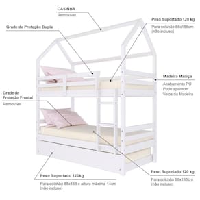 Medidas do Colchão da Cama Auxiliar (cm x cm): 188x88 e Altura Máxima 14 (Não Incluso)