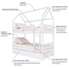 Material Principal: Madeira Maciça | Cor: Branco | Necessita Montagem: Sim | Acompanha Colchão: Não | Tipo de Cama: Treliche