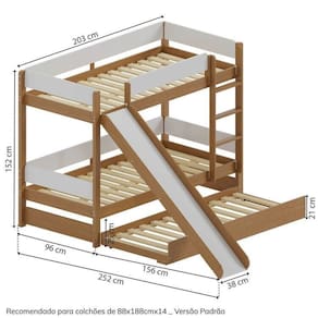 1x Kit Escorregador com Proteção para Beliche Aria Madeiraoriginals Nogueira/Branco Largura: 151 cm Altura: 151 cm Peso: 15 kg Profundidade: 156 cm Necessita Montagem: Sim