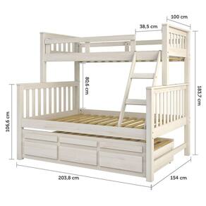 Treliche com Cama de Casal Branco Lavado c/ Cama Auxiliar 3 Gavetas Madeira Pinus - Saraiva