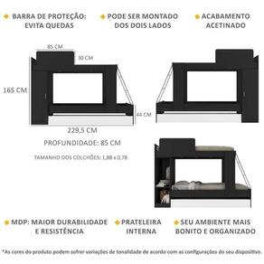 O Treliche com Colchão Incluso 1 Porta Havana Multimóveis é produzido em MDP com acabamento acetinado (cerca de 20% de brilho), garantindo maior durabilidade e resistência. Conta com barra de proteção na cama superior para evitar quedas, 1 porta lateral com prateleira interna para organizar seus pertences, além de escada metálica em ângulo que facilita o acesso à cama superior. Versátil, pode ser montado dos dois lados - esquerdo ou direito. O treliche deixará o seu quarto mais funcional e dinâmico para acomodar seus filhos ou aquelas visitas de final de semana. Com capacidade para suportar até 80kg nas camas principais e 70kg na cama auxiliar, este produto é perfeito para quem busca otimizar espaço sem abrir mão do conforto. Acompanha colchões D23 com tratamento antiácaro e antialérgico que proporcionam noites de sono mais tranquilas e saudáveis.