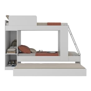 Produzido em MDP com pintura UV acetinada, o Treliche com Colchão Incluso e Barra de Proteção Multimóveis garante durabilidade e resistência. Suportando até 80kg nas camas principais e 70kg na cama auxiliar, possui barra de proteção na cama superior para evitar quedas, além de uma porta lateral com prateleira interna, que oferece amplo espaço para organizar pertences. A escada metálica em ângulo facilita o acesso à cama superior, tornando sua utilização prática e segura. Versátil, pode ser montado dos dois lados - esquerdo ou direito. Para acrescentar conforto, acompanha colchão D23 com tratamento antiácaro e antialérgico, proporcionando noites de sono mais tranquilas e saudáveis.