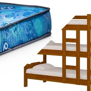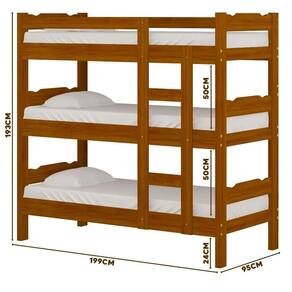 A Treliche chegou para otimizar espaço e facilitar sua vida. Camas desenvolvidas em madeira maciça pinus de reflorestamento, ecologicamente correta e com garantia de resistência e durabilidade. Conta com excelente acabamento e cada uma suporta até 120kg. Escada fixa reforçada e grade de proteção na cama superior, proporcionando um sono tranquilo. O design e a cor em destaque garantem ao espaço modernidade e classe. Além disso, essa treliche acompanha 3 colchões da marca Gazin, produzidos em espuma D20, que é uma densidade ideal para todos os biotipos, possuem revestimento em tecido poliéster 100% sintético, que não acumula poeira e materiais orgânicos e são tamanho padrão solteiro (0,88 x 1,88).