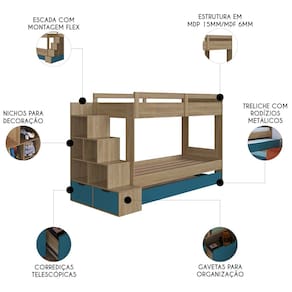 A Treliche Infantil Com Escada e Nichos Infix C06 Aveiro/Azul, da Mpozenato, é uma solução inovadora e inteligente para transformar o Ambiente Infantil em um espaço encantador e funcional.