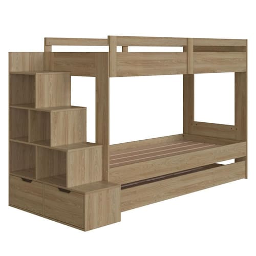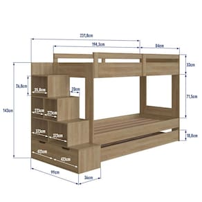Cada degrau da escada possui nichos embutidos, ideais para armazenar e organizar brinquedos, livros e outros acessórios. Além disso, os dois últimos nichos rentes ao chão são equipados com gavetas, tornando o produto ainda mais completo e versátil. A montagem da escada lateral pode ser feita tanto no lado direito quanto no lado esquerdo, adaptando-se às necessidades do ambiente.