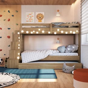 Apresentando a Cama Treliche com Escada da Completa Móveis - a escolha perfeita para tornar o quarto das suas crianças ainda mais charmoso e funcional! Com escadas laterais que proporcionam praticidade na subida e descida dos pequenos, esta cama é projetada para otimizar o espaço e facilitar a organização.