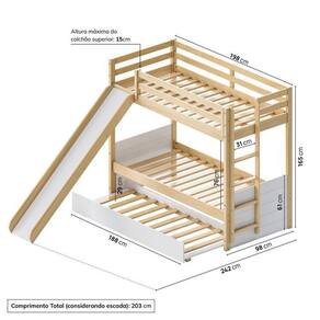 Itens Inclusos: 1 Beliche 1 Cama Auxiliar, 1 Escorregador, Manual de Montagem e Kit Ferragens Largura do Conjunto: 198 cm Linha ou Coleção: New Garden Marca: Casatema Material do Estrado: Madeira Maciça Material Principal: Madeira Maciça modular: Não Necessita Montagem: Sim Origem do Produto: Nacional Permite a Utilização de Cama Auxiliar: Sim Peso: 85 kg Possui Baú: Não Possui Gavetas: Não Possui iluminação: Sim Possui Pés: Não Possui Portas: Não Possui Prateleiras: Não Recomendações de Uso, Manutenção e Limpeza: Na limpeza não utilizar produtos químicos e abrasivos, usar apenas um pano umedecido, para garantir a maior durabilidade do móvel. Suporta Até (kg): 300 kg Tamanho da Cama: Solteiro Tamanho do Colchão Indicado Cama Auxiliar: 78x188cm Tipo de Cama: Treliche Tipo de Colchão: Solteiro Tipo de Estrado: Fixo Tipo de Grade de Proteção: Grade
