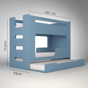 Pode ser adquirido nas versões Com escorregador ou Beliche. Acompanha Colchão: Não Altura do Estrado até o Chão: 2 cm Ambiente Principal: Quarto Infantil Cama Auxiliar Acompanha Colchão: Não Cama Auxiliar Suporta Até (kg): 160 kg codigo_ean: 7909903312469 Complexidade da Montagem: Média: pode ser montado por mais de uma pessoa e/ou necessite de maior conhecimento para montagem Cor: Azul Cor do Produto: Azul Escala de Brilho: Fosco Informações Complementares: Pintura atóxica, estrutura reforçada, escadas embutidas na peseira. Itens Inclusos: 1 Treliche, Kit Ferragens e Manual de Montagem Linha ou Coleção: Lumi Manual de Montagem e Instalação: https://product-hub-prd.madeiramadeira.com.br/850967/documents/84ce9fbb-74f0-486e-9c4a-1e235432729a3241manualbelichelumirev01.pdf Material do Estrado: Madeira Material dos Pés: MDF Material Principal: MDF Necessita Montagem: Sim Peso: 165 kg Possui Baú: Não Possui Gavetas: Não Possui Pés: Não Recomendações de Uso, Manutenção e Limpeza: Para higienização, utilizar um pano levemente umedecido. Sistema de Montagem: Parafusos, Minifix, Cavilhas. Suporta Até (kg): 240 kg Tamanho da Cama: Solteiro Tamanho do Colchão Indicado (L x C): 88cm x 188cm Tipo de Cama: Treliche Tipo de Colchão: Solteiro Tipo de Estrado: Fixo Marca: Timber Ean: 7909903312469