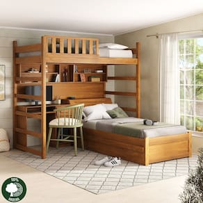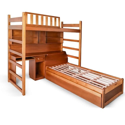 O treliche reto é ideal para economizar espaço, promovendo conforto e qualidade na hora do sono. Além disso possui um nicho, baú e escrivaninha, para melhor organização de brinquedos.