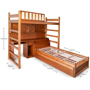 A cama turca você pode organizar ela tanto no lado direito como no lado esquerdo da cama, assim como o baú e a escrivaninha. Produto Montado: Sim Acompanha Cama Auxiliar: Sim Acompanha Colchão: Não Altura do Estrado até o Chão: 36 cm Altura do Estrado Superior até o Chão: 150.0000 Ambiente Principal: Quarto Cama Auxiliar Acompanha Colchão: Não Cama Auxiliar com Rodízio: Sim Cama Auxiliar Suporta Até (kg): 300 kg codigo_ean: 7900288250025 Complexidade da Montagem: Média: pode ser montado por mais de uma pessoa e/ou necessite de maior conhecimento para montagem Cor: Mogno Mel Cor do Produto: Mogno Mel Escala de Brilho: Fosco Itens Inclusos: 1 Treliche e Kit Ferragens Manual de Montagem e Instalação: https://product-hub-prd.madeiramadeira.com.br/827562441/documents/38ded71f-baee-4df2-8bb4-385d78507c9f3237859569917588219674447.pdf Marca: Moveis Nathalia Material da Escada: Madeira Maciça Material Principal: Madeira Maciça Medida da Escrivaninha (A x L x P): 74,5x90x38 Necessita Montagem: Sim Número de Camas: 03 Origem do Produto: Nacional Permite a Utilização de Cama Auxiliar: Não Peso: 50 kg Peso Suportado por cada cama: 150 kg Possui Baú: Sim Possui Escrivaninha: Sim Possui Gavetas: Não Possui Grade: Sim Possui Pés: Não Possui Portas: Não Possui Prateleiras: Não Recomendações de Uso, Manutenção e Limpeza: Utilizar pano levemente umidecido com lustra móveis Sistema de Montagem: Parafuso e cavilhas Tamanho do Colchão Indicado (L x C): 88X188 Tamanho do Colchão Indicado Cama Auxiliar: 88x188 Tipo de Cama: Treliche Tipo de Colchão: Solteiro Tipo de Estrado: Removível Tipo de Madeira Maciça: Eucalipto Trava de Segurança: Sim Marca: Não Informado