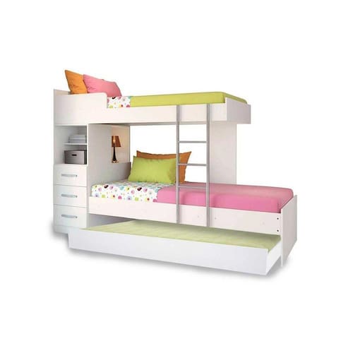 Treliche Santos Andirá Havana Plus c/ 3 Gav. e Grade Proteção (Beliche+Cama Auxiliar) - C o r Branco/Branco