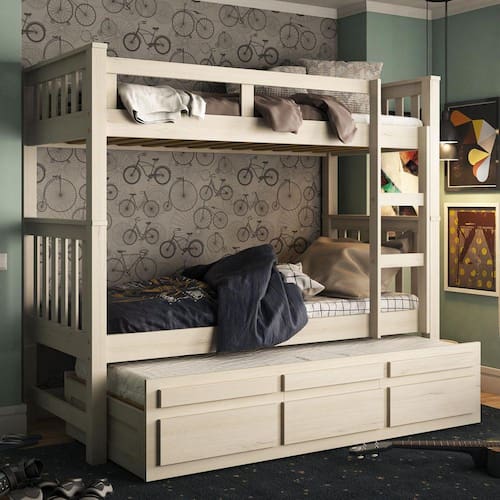 Essa linda treliche de madeira maciça é ideal para complementa o dormitório da garotada. Possui uma cama auxiliar com rodízios e 3 gavetas com lindos detalhes, proteção lateral na cama superior ajudando na sua segurança e conforto, 1 escada facilitando a sua subida para a cama superior. Aproveite e leve para a sua casa!