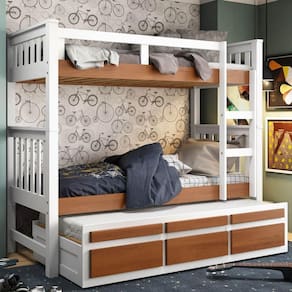 Treliche Solteiro Branco Lavado/Carvalho 3 Gavetas e 1 Escada Madeira de Pinus - Saraiva