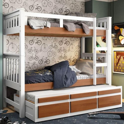 Essa linda treliche de madeira maciça é ideal para complementa o dormitório da garotada. Possui uma cama auxiliar com rodízios e 3 gavetas com lindos detalhes, proteção lateral na cama superior ajudando na sua segurança e conforto, 1 escada facilitando a sua subida para a cama superior. Aproveite e leve para a sua casa!