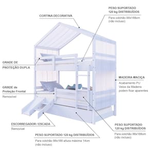 Diferenciais: Escada Fixa, Auxiliar com Rodízios, Kit Escada/Escorregador, Grade de Proteção, Casinha e Cortina Decorativa.