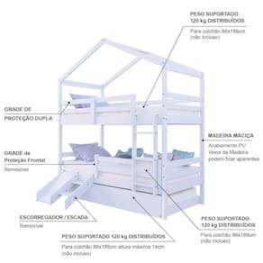 Diferenciais: Escada Fixa, Auxiliar com Rodízios, Kit Escada/Escorregador, Grade de Proteção, Casinha Decorativa.