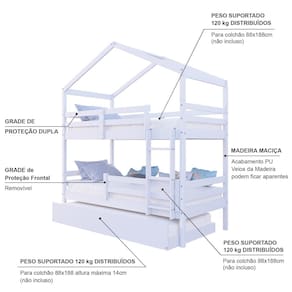Diferenciais: Escada Fixa, Auxiliar com Rodízios, Grade de Proteção, Casinha Decorativa.