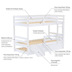 Diferenciais: Beliche em Madeira, Escada Fixa, Grade de Proteção Dupla, Grade Removível, Auxiliar em Madeira/MDF com Rodízios e Kit Escadinha/Escorrega.