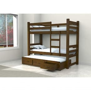 Possui escada lateral e 3 camas de solteiro sendo 1 cama auxiliar, além de proteção lateral localizada na parte superior do produto, garantindo total .