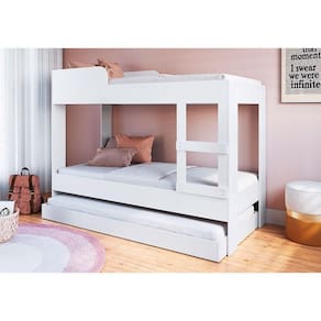 Treliche Yuma Solteiro 90 Art In Móveis Branco Otimizar espacos e uma das metas da Art In Moveis, por isso criamos a Treliche Solteiro YUMA. Este produto foi produzido em excelente material MDP com acabamento em Finish Foil Acetinado, que garante maior resistencia e qualidade em seu movel. A essencia de criar solucoes que trazem mais conforto sua vida e o grande diferencial dos produtos Art In Moveis. Cada nova ideia e uma mistura de criatividade, funcionalidade e muita dedicacao. Caracteristicas do Produto: Marca: Art In Moveis Modelo: Yuma Para colchoes de 190 x 90 cm. Altura estrado inferior 32,3 cm. Altura estrado superior 121,2 cm. Material: MDP Acabamento: finish foil Ferragens: sim Manual de montagem detalhado: sim Gavetas: 0 Pes: 4 Rodizios: 5 Peso total suportado pelo produto (kg): 90 cada