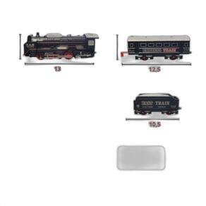 Informações técnicas do produto: - Dimensões aproximadas do produto trem : Altura total 6cm / Comprimento total 62cm; - Dimensões aproximadas do produto 3 opções de trilho montado : Diâmetro 91cm - 60cm - 44cm; - Composição: Plástico; - Contém: 5 vagões + trilhos; - Validade: Indeterminada; - País de origem: China.