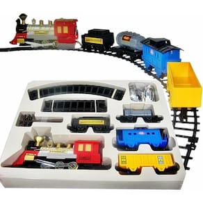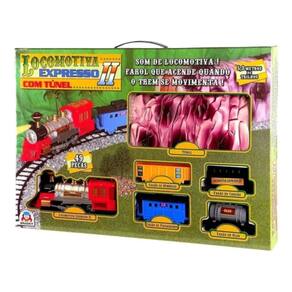 A linda Locomotiva Expresso II da Braskit acende o farol quando está em movimento e emite som de locomotiva