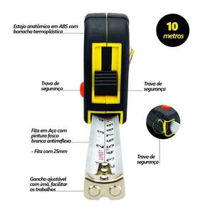 01 x Trena 10 Metros Magnética 3 Travas Emborrachada 25MM