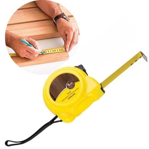 A Trena de Medição Profissional 5m X 19mm é ideal para quem busca precisão e qualidade em suas medições. Com uma fita de aço resistente, possui 5 metros de comprimento e 19mm de largura, oferecendo versatilidade com unidades de medida em centímetros e polegadas. Equipada com botão de trava para segurança durante o uso e gancho magnético para fixação em superfícies metálicas, é perfeita para projetos de construção, arquitetura, marcenaria e mais.