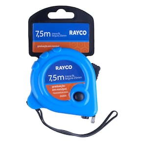 Marca reconhecida: Rayco — com uma linha de trenas que destacam por revestimento em borracha, alça de pulso, presilha para cinto e fita de aço reforçada.