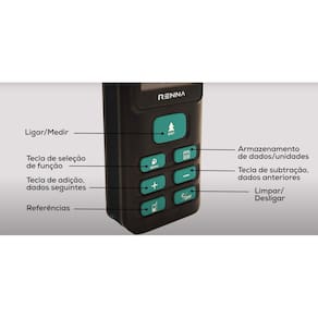 Diferenciais - Perfeita para medições de disntâncias longas com praticidade e rapidez; - Dispositivo compacto e portátil; - Funções de Medida: Área, volume e Pitágoras I, II e III ; - Possibilidade de alteração do ponto de referência Início ou fim da trena ; - Ângulo digital em tempo real; - Mede de 20cm a 30mt; - Grau de proteção IP54; - Possui armazenamento de dados/unidades, teclas de adição e subtração de dados anteriores Ean: 7899517422411