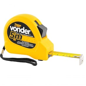 Trena Curta De Aco 5m X 19mm - Vonder Trena Curta de Aco 5M X 19MM - Vonder - Indicada para medições em geral. - Possui estojo anatômico em ABS de alta resistência. - Fita em aço com pintura fosca antirreflexo, numeração contínua e graduação em milímetros/polegadas, facilitando a leitura e proporcionando maior precisão. - Possui trava da fita que facilita a leitura, alça em nylon e presilha para cinto, auxiliando no transporte e segurança durante o uso. - Botão para travamento rápido que confere maior praticidade. - Conta ainda com gancho ajustável na ponta da fita, permitindo medições internas e externas mais precisas.