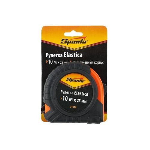 A trena curta da sparta é produzida com caixa plástica e revestimento de borracha, fita de 10 m x 25 mm e mecanismo de fixação da fita para um maior conforto de trabalho.