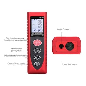 Características: • Design compacto único • Display LCD • Mede com precisão a Distância de 0,5 a 80 metros • Mede temperatura ambiente • Executa cálculos de Área, Volume, Medição Continua, Medição Pitagórica, faz adição, subtração. • A mira Laser ajuda a determinar com precisão a medida. • Ideal para reformas, construtoras, imobiliárias, topógrafos, arquitetos, engenheiros, etc. • À Prova d'água e poeira: IP54 • Tipo de Laser: Classe 2 635nm < lmW • Armazenamento: 20 medições. • Desligamento Automático. • Limpeza de Dados: Sim • Exibição de nivel de bateira: sim. • Exibição de força de sinal: sim. • Interruptor de referencial de medição: sim. • Medição Continua(Max/Min): sim.