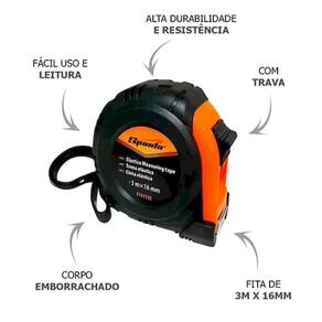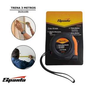 ModeloSPARTA-3131155MarcaSpartaA trena possui trava para a fita?Sim, a trena possui um sistema de trava para facilitar a leitura das medidas.Qual a resistência do estojo emborrachado?O estojo emborrachado é altamente resistente a impactos, proporcionando maior durabilidade ao produto.A fita métrica é resistente à água?A fita métrica possui um revestimento resistente, mas não é recomendada para imersão em água.Qual a precisão das medidas?A trena oferece medidas precisas com uma margem de erro mínima, adequada para uso .A trena é indicada para uso em quais tipos de projetos?A trena é indicada para projetos de construção, carpintaria, marcenaria e bricolagem.Comnto da fita3 mtLargura da fita16 mmUnidades de medidaCentímetrosEAN7899612796028ComposiçãoMetal, borracha e plásticoGarantia90 dias (contra defeitos de fabricação) ;