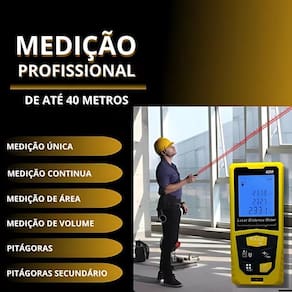 - Medição Precisa: Distância de até 40 metros com precisão. - Modos Diversificados: Medições de Distância, Área, Volume e Pitágoras para atender a diferentes necessidades. - Memória Automática: Retenção de dados automática, lembrando a última unidade de medida utilizada mesmo após o desligamento. - Tela com Backlight: Visor iluminado para fácil visualização em qualquer condição de iluminação. - Nível de Bolha: Inclui nível de bolha integrado para maior precisão no posicionamento. - Design Compacto e Leve: Fácil de transportar e manusear, ideal para o dia a dia. - Economia de Energia: Função de desligamento automático após 150 segundos para preservação da bateria.